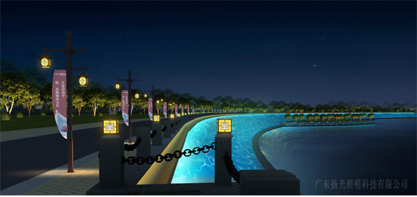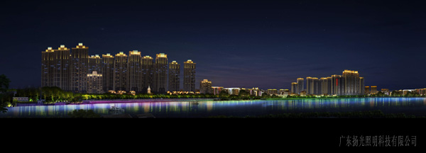 不同的視角,展現(xiàn)不同的燈光氛圍。高低錯落的建筑群,通過燈光的點綴在夜晚清晰可見。搭配沿岸樹木燈光的點綴,在不同時段及節(jié)日可以打開星空光束燈。使整體效果更加協(xié)調(diào)統(tǒng)一。