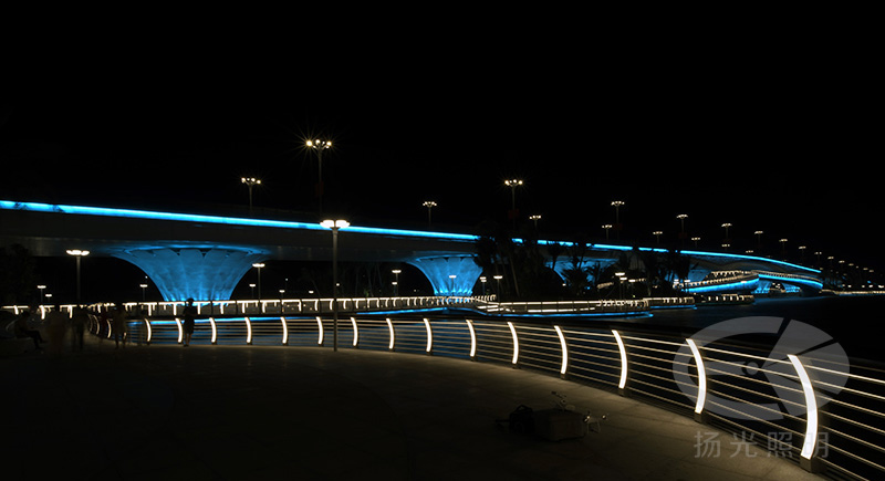 橋梁是一種實質(zhì)連接,照明則是自然與燈光的對接。將燈光融入海波的輕盈與流動、花朵的絢麗爛漫,燈光表現(xiàn)?;◢u婀娜多姿、俊秀亮麗的氣質(zhì)。