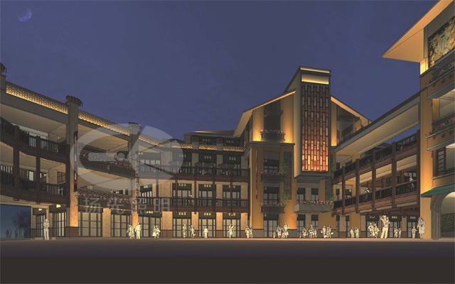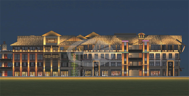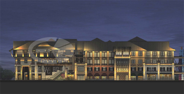 本次設計以體現(xiàn)古鎮(zhèn)建筑民族文化特色和展示項目商業(yè)價值為引領,挖掘和探討項目文化背景和建筑特色,利用先進的燈光技術手段塑造特有的古鎮(zhèn)夜景空間形象。讓項目煥發(fā)出無限魅力,打造具有表現(xiàn)力的燈光形態(tài),兼顧視覺需求與藝術表現(xiàn),以一種高貴的姿態(tài)展示該項目的商業(yè)價值和藝術價值。