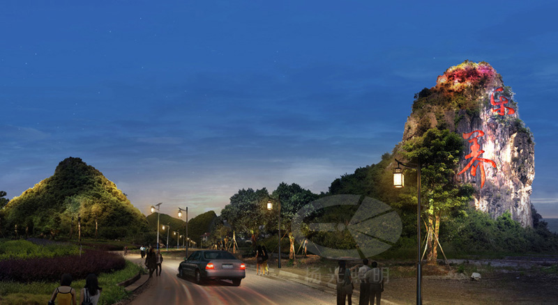 入口山體“樂養(yǎng)”字體燈光設(shè)計(jì)+山體燈光