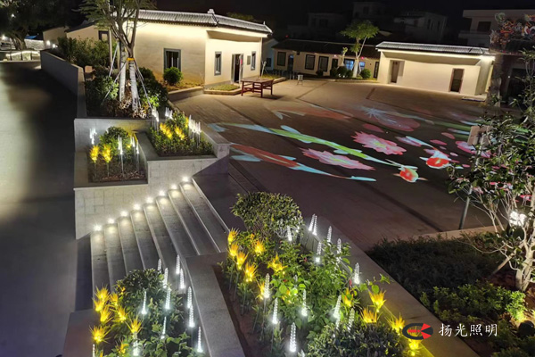 濱水休閑活動(dòng)廣場(chǎng)設(shè)置的一些具有發(fā)光效果的燈具,增添一定的游玩觀賞性和趣味性,營(yíng)造優(yōu)美,和諧的新鄉(xiāng)村環(huán)境。