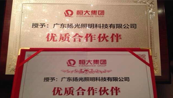 揚(yáng)光照明榮獲恒大地產(chǎn)優(yōu)質(zhì)供應(yīng)商稱號(hào)