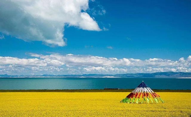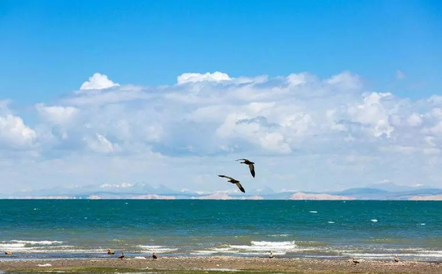 經(jīng)過(guò)日月山,到達(dá)青海湖。青海湖又名“措溫布”,即藏語(yǔ)“青色的?!敝?,位于青海省西北部的青海湖盆地內(nèi),既是中國(guó)最大的內(nèi)陸湖泊,也是中國(guó)最大的咸水湖。由祁連山的大通山、日月山與青海南山之間的斷層陷落形成。